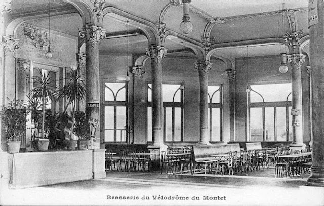 | La brasserie au moment de sa construction. On distingue le vélodrome à sa gauche. Il n'était plus présent quand j'allais jouer au Tarot dans l'établissement à la fin des années soixante ! |